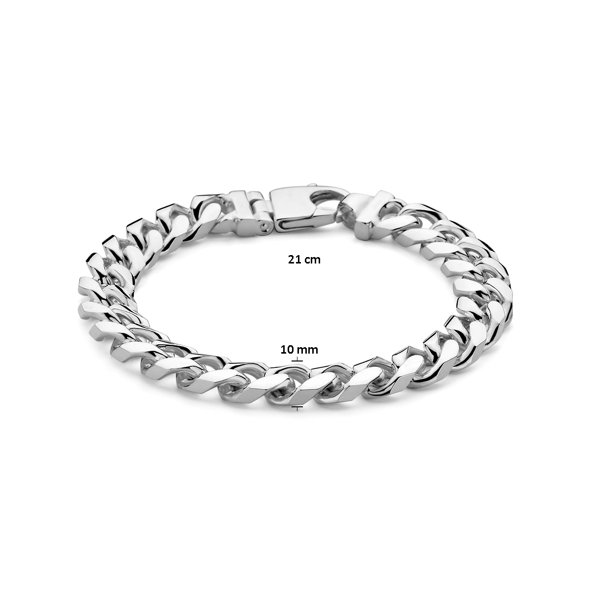 925 Zilveren armband met een schakelbreedte van 10mm. De armband heeft een draaglengte van 21cm. Uitgevoerd met een karabijn sluiting.
