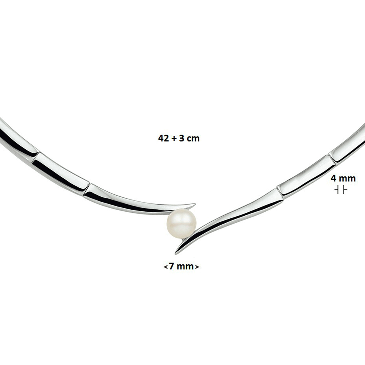 Beschrijving: Chique gerhodineerd zilveren collier met tussenstuk is 4mm breed en heeft een lengte van 42cm en een extentsie van 3cm en is uitgevoerd met een zoetwaterparel van 7mm. Dit collier heeft een luxe uitstraling en glimmende zoetwaterparel deze combinatie zorgt voor een glamorous look. U kunt dit collier combineren met bijpassende sieraden uit onze collectie of uit uw eigen sieraden stash. Zo creeert u elke keer weer een nieuwe look.