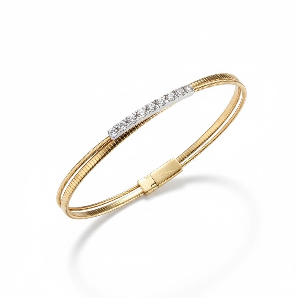 14 karaat geelgouden armband met slangen schakel en 10 briljantjes met een totaal van 0.31 caraat.