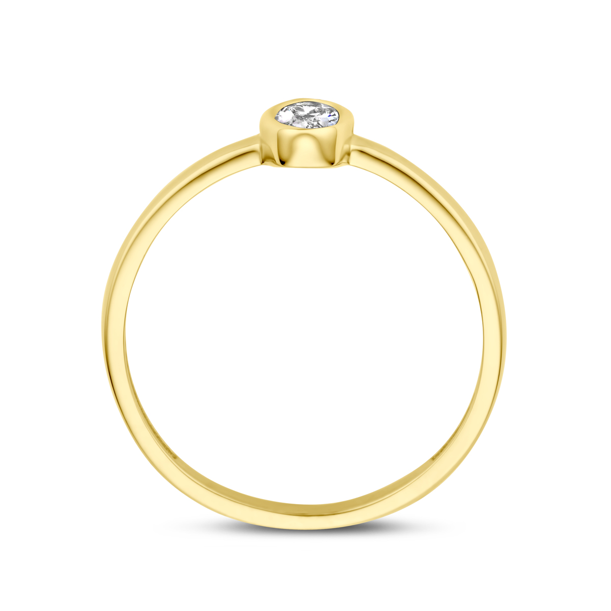 14k Geelgouden ring uitgevoerd met een ovale zirkonia. De ring heeft een breedte van 6mm.