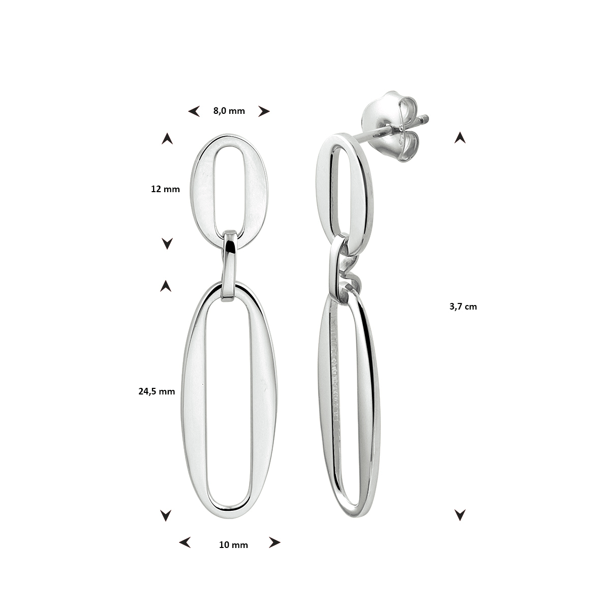 Gerhodineerd 925 zilveren oorhangers uitgevoerd in schakelvorm. De oorhangers hebben een totale hoogte van 3.7cm en een breedte van 10mm.