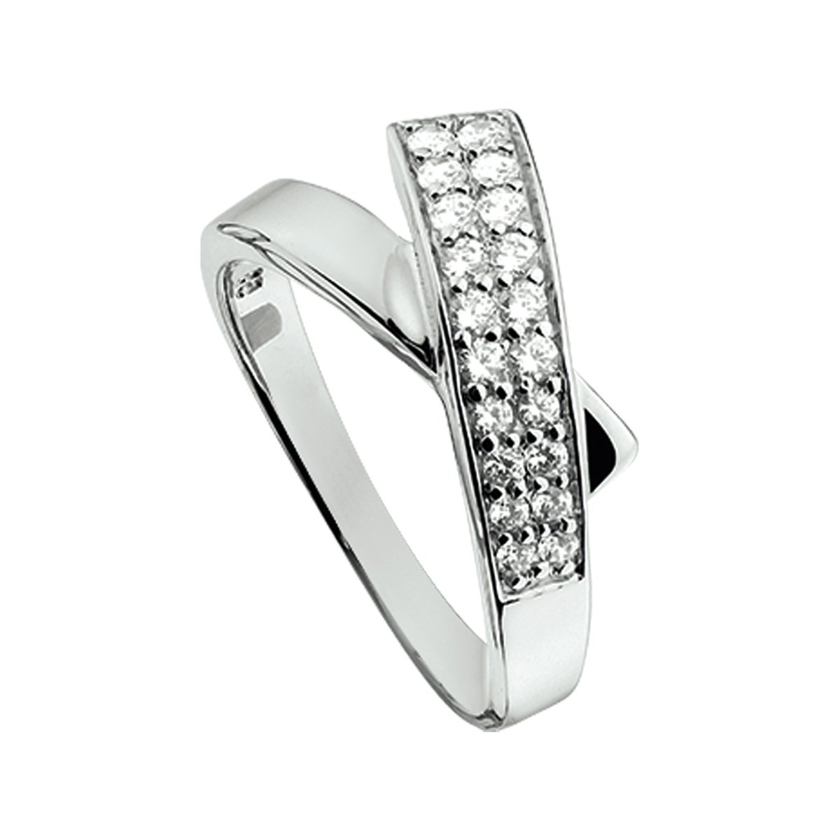Beschrijving: Gerhodineerd zilveren ring met zirkonia.