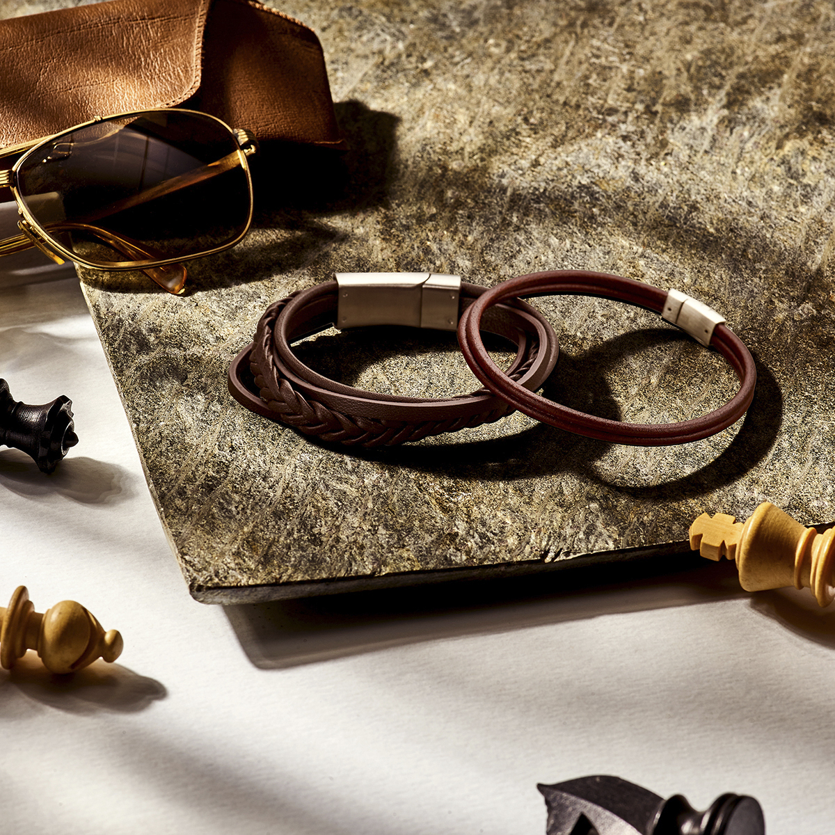 Stalen bruin leren armband uitgevoerd met een stalen magneetsluiting. De armband heeft een breedte van 12mm.
