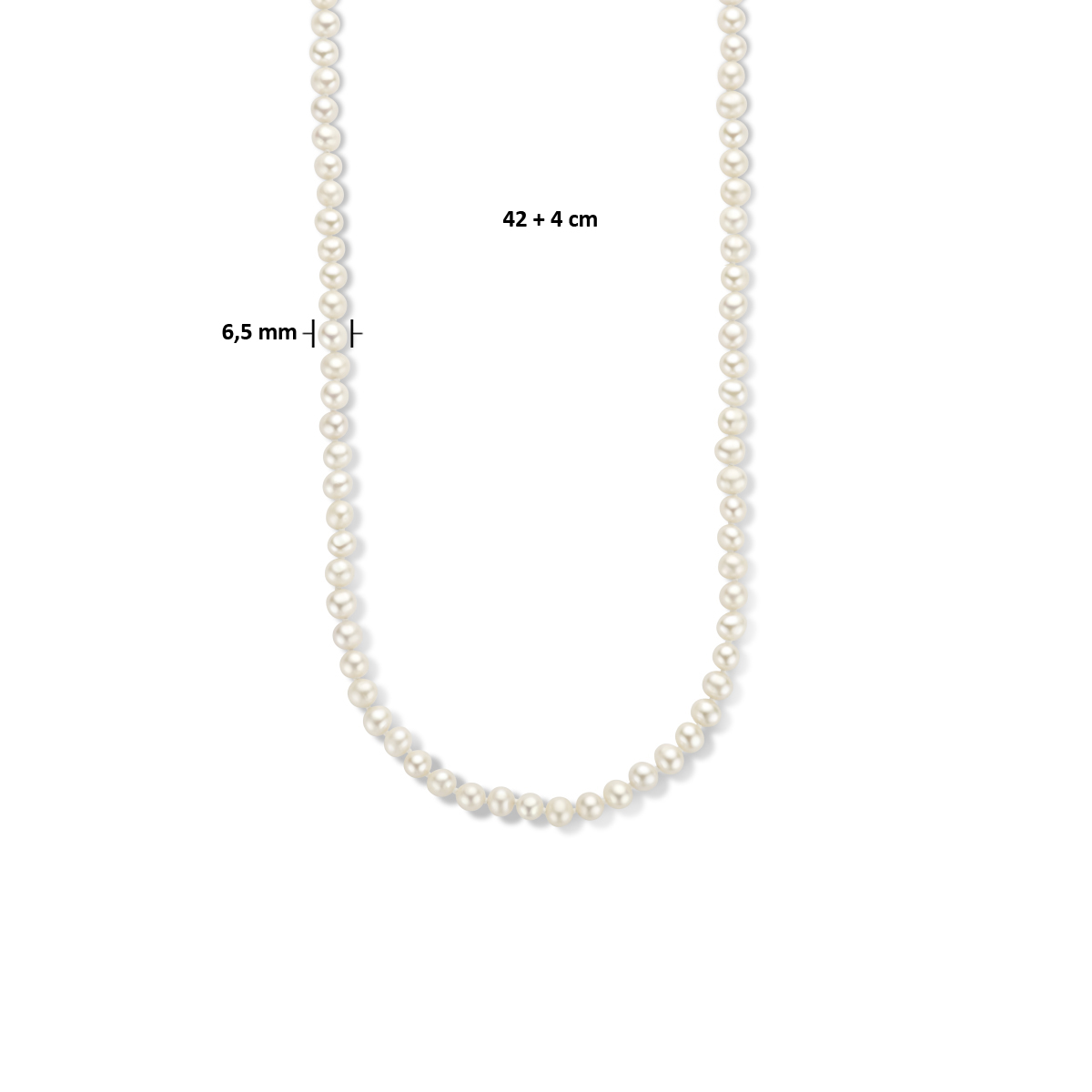 Beschrijving: Stijliconen als Audrey Hepburn en Coco Chanel bewezen het ons al: een little black dress en tijdloze parels horen in de garderobe van iedere vrouw! Details: Gerhodineerd zilveren collier met zoetwaterparels. De parelgrootte is 6.5mm.