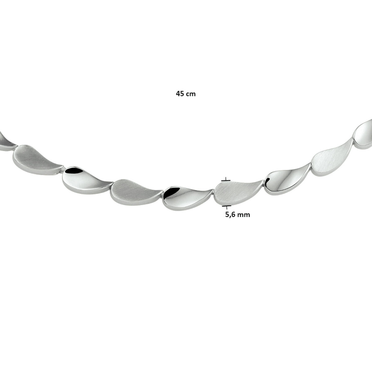 Gerhodineerd 925 zilveren collier uitgevoerd met een stevige karabijn sluiting. Het collier heeft een poli/matte afwerking en een draaglengte van 45cm. De schakelbreedte is 5.6mm.