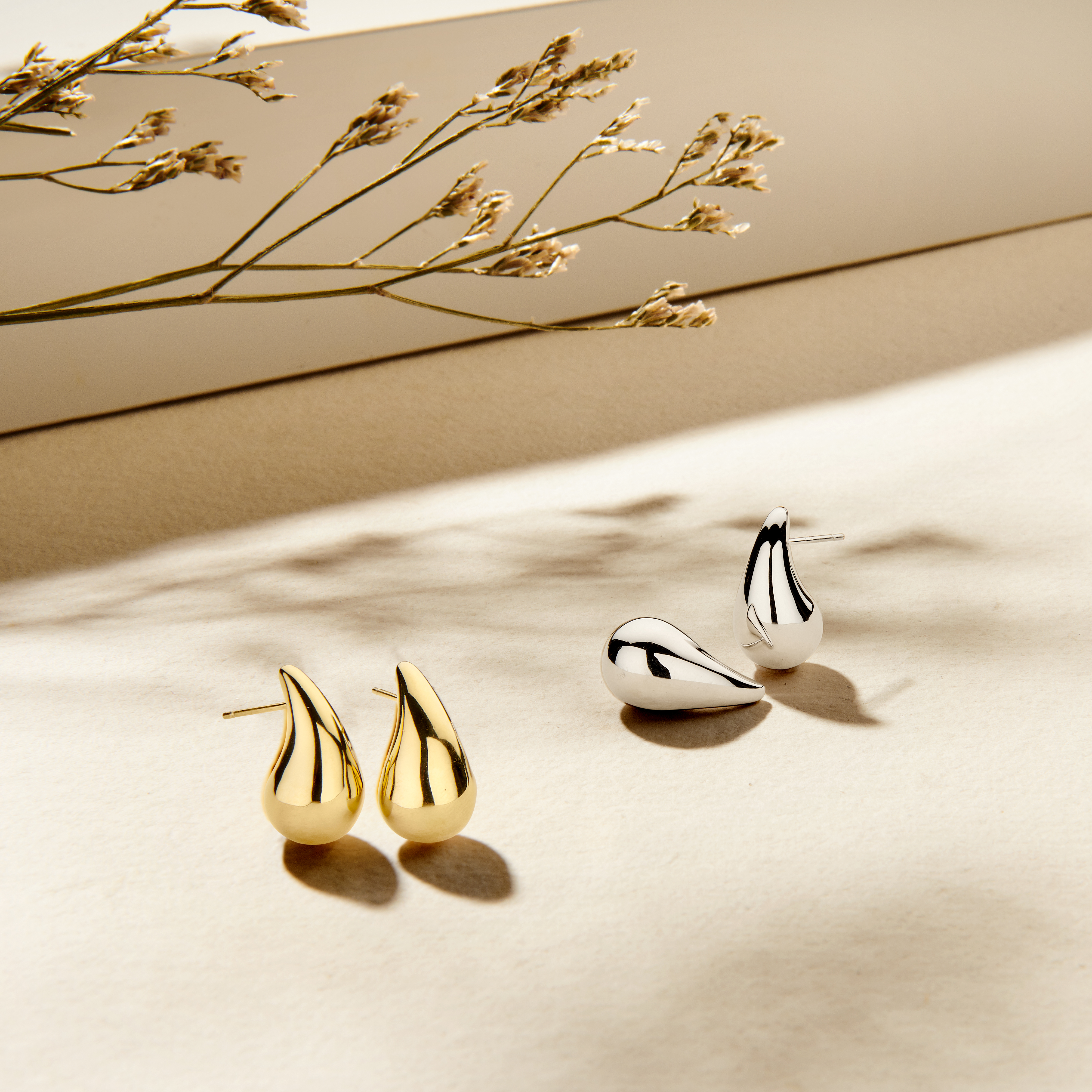 Gerhodineerd 925 zilveren oorknoppen uitgevoerd in de vorm van een druppel. De oorknoppen hebben een afmeting van 20x10.5mm.