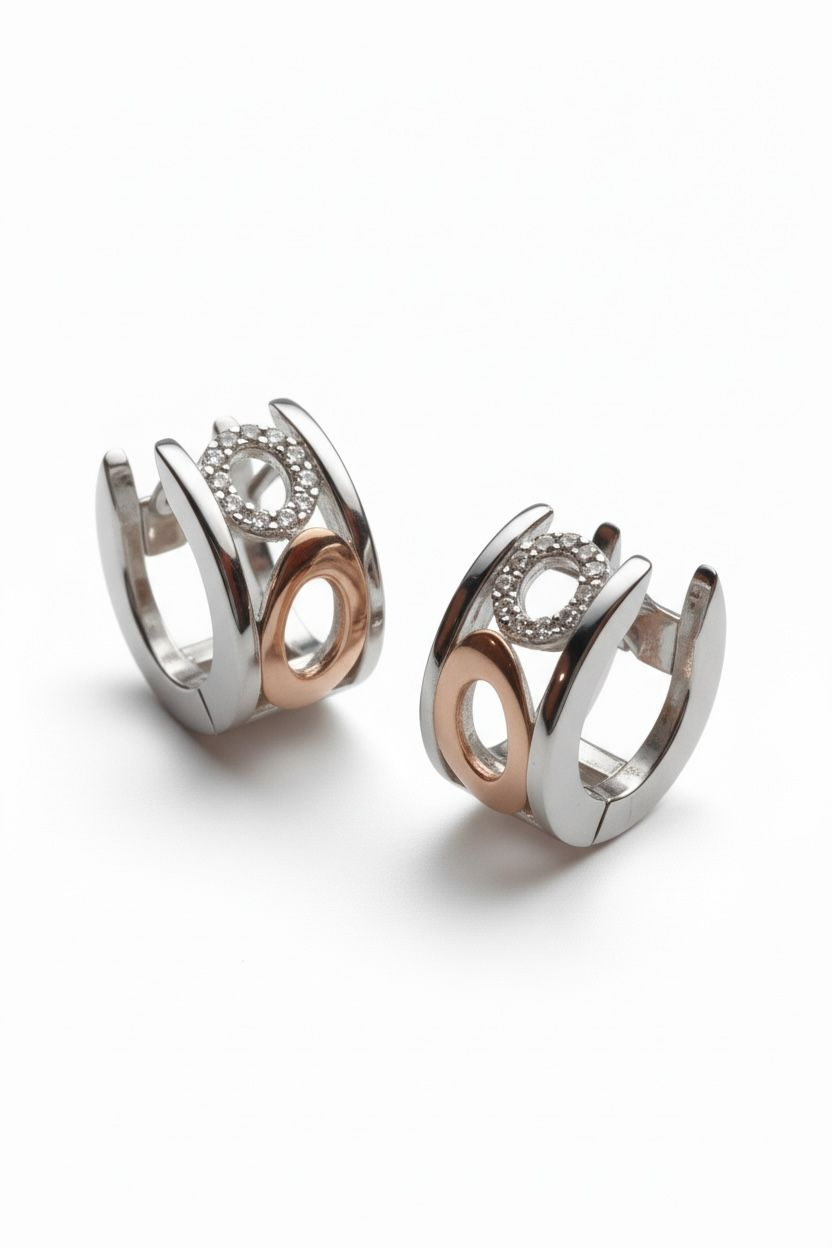 Zilveren verrgulde creolen met zirkonia en rosé.