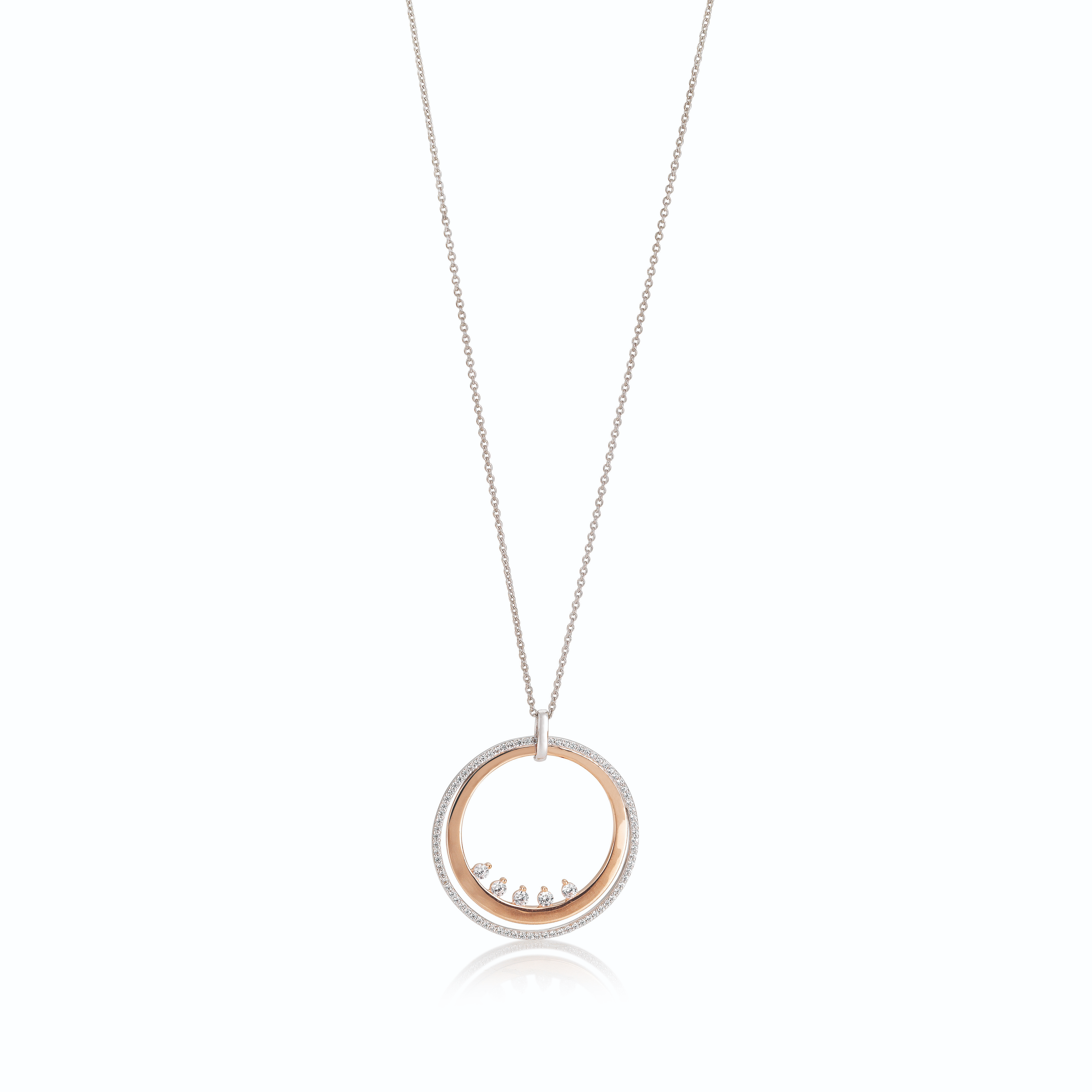 Zilveren vergulde hanger met zirkonia en rosekleur.