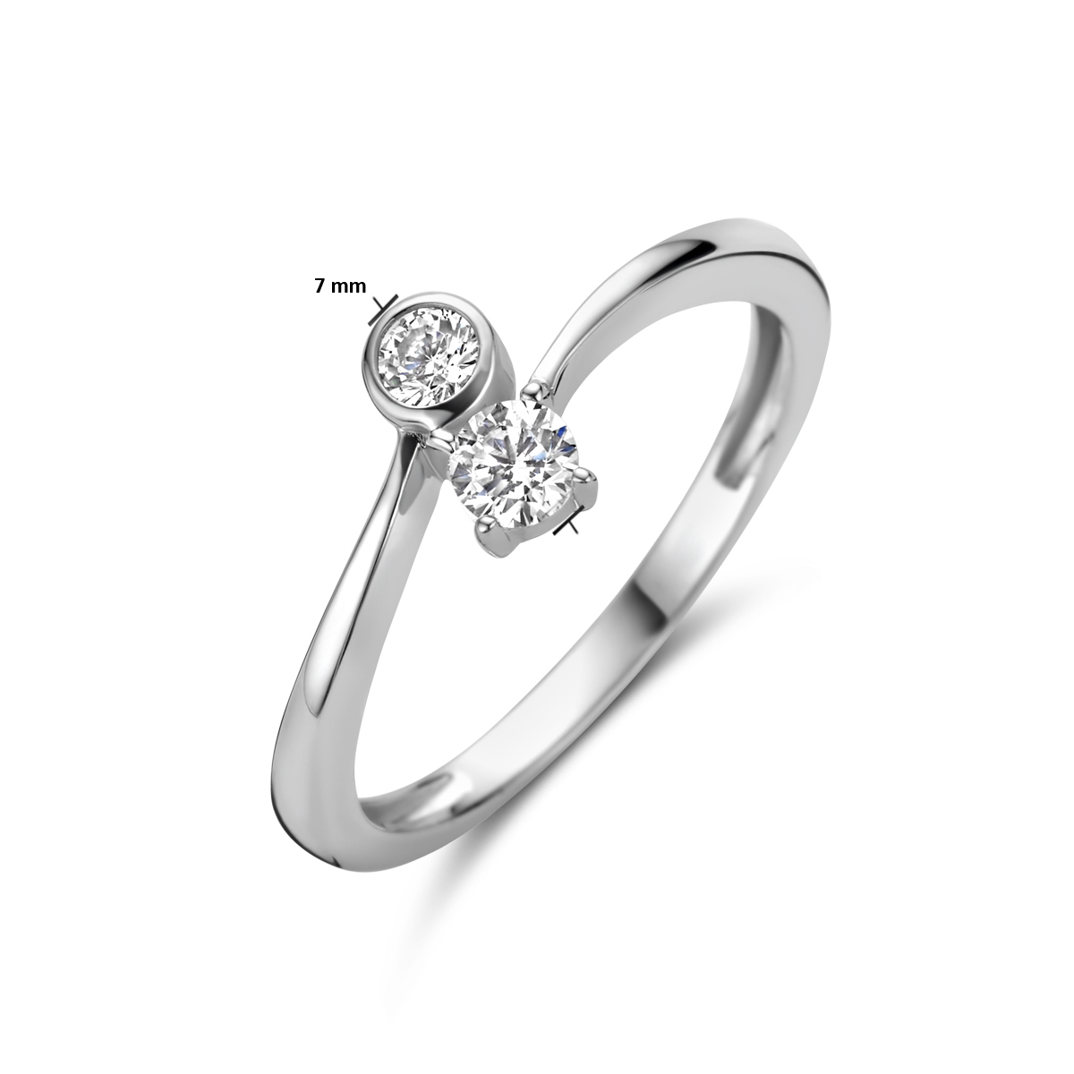Gerhodineerd 925 zilveren ring uitgevoerd met schitterende zirkonia. De ring heeft een breedte van 7mm.